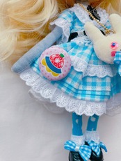 お洋服は、ブラックカラーをポイントに、ブルーでさわやかガーリーアリス風にしました。